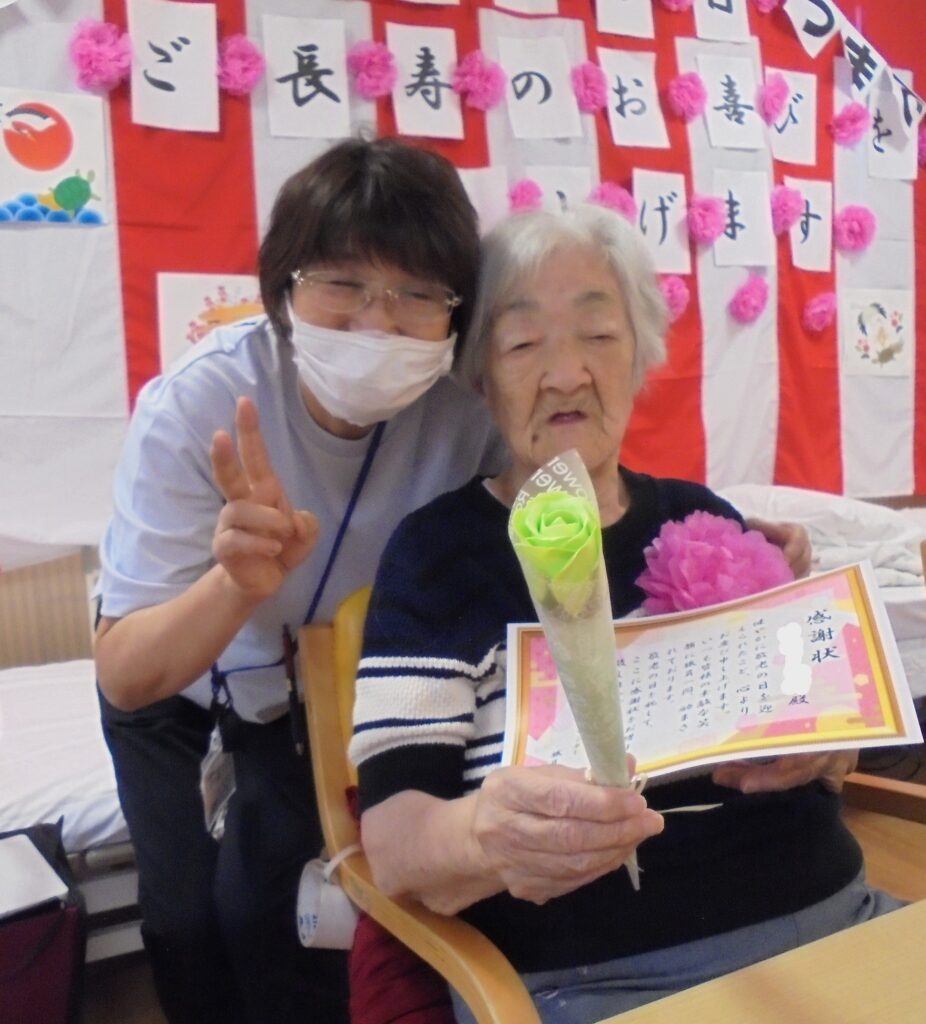 笑風苑からのお知らせ2025.09.26🎈祝・100歳!お誕生日会を開催しました🎂💐