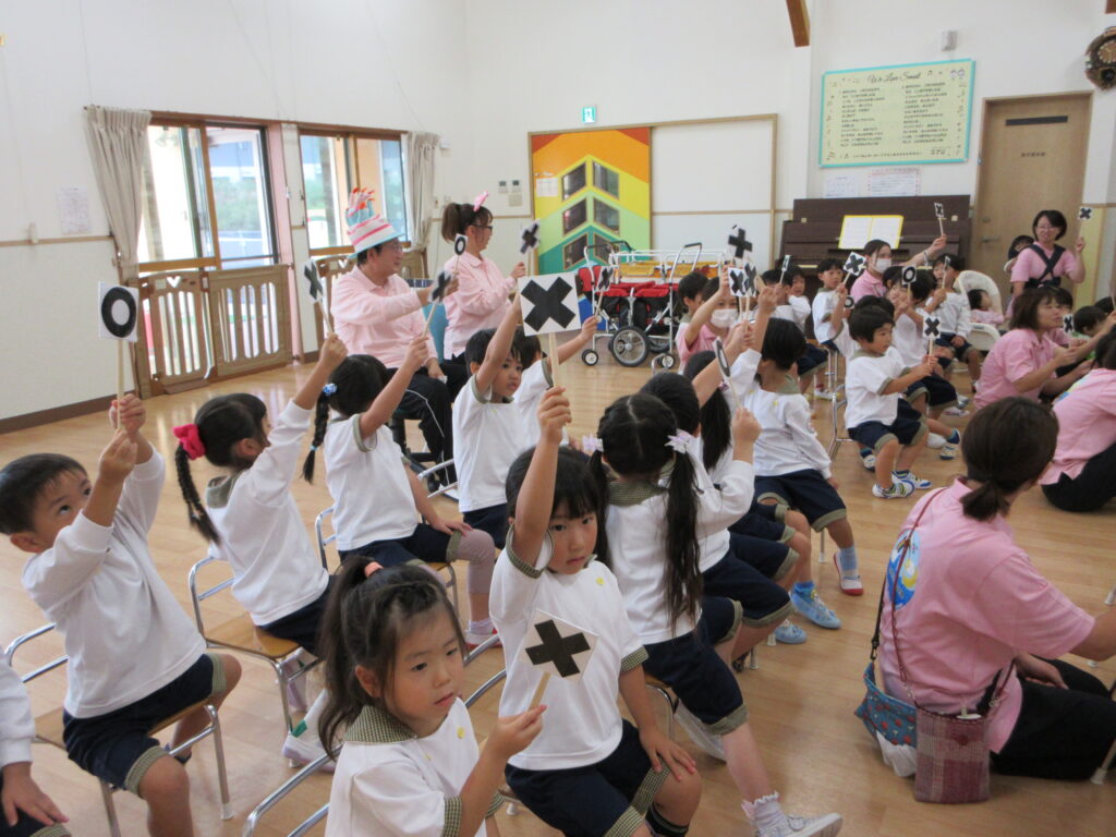 そら組さんも、〇✖札をもって参加しました~😆
