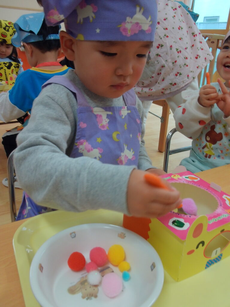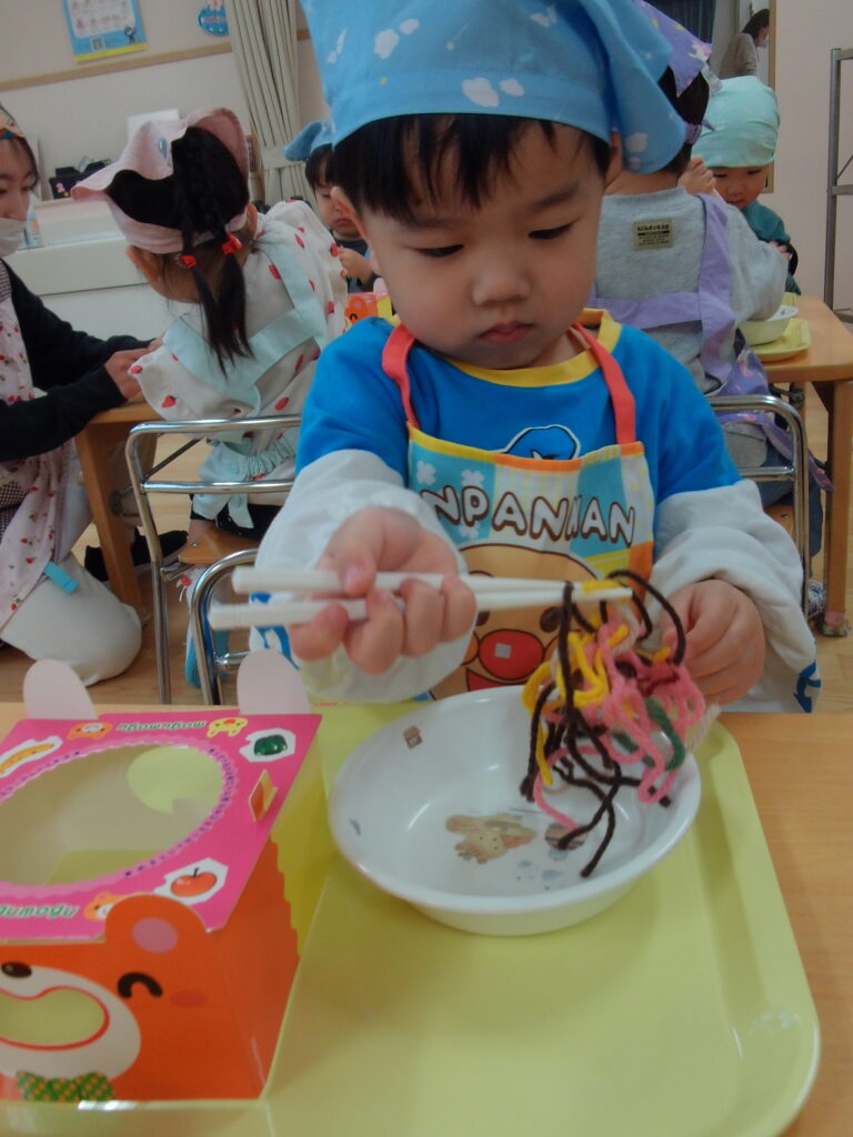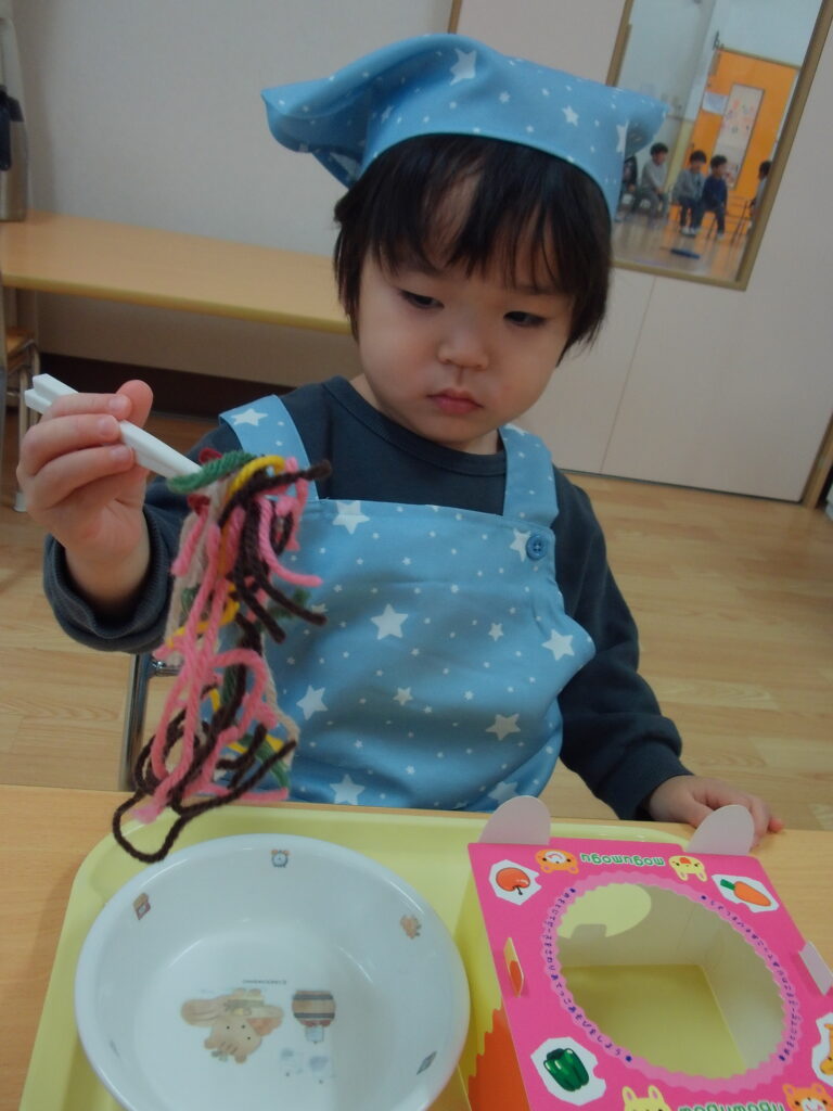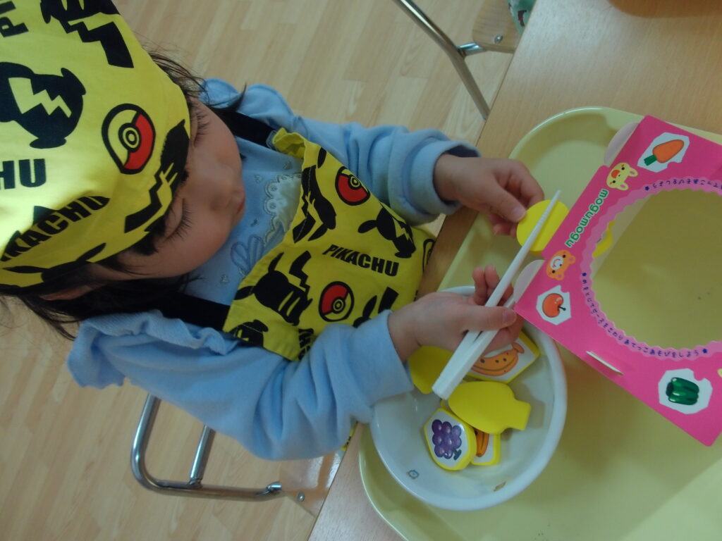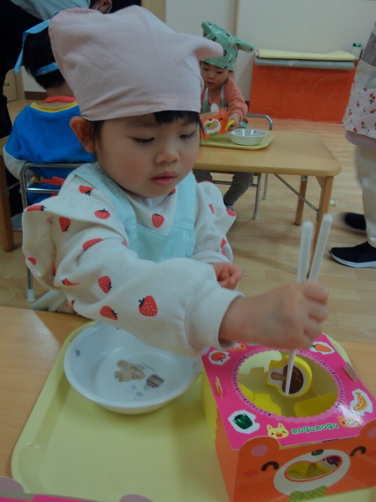 まずは、スプーンや箸の持ち方を練習をしていきます👆