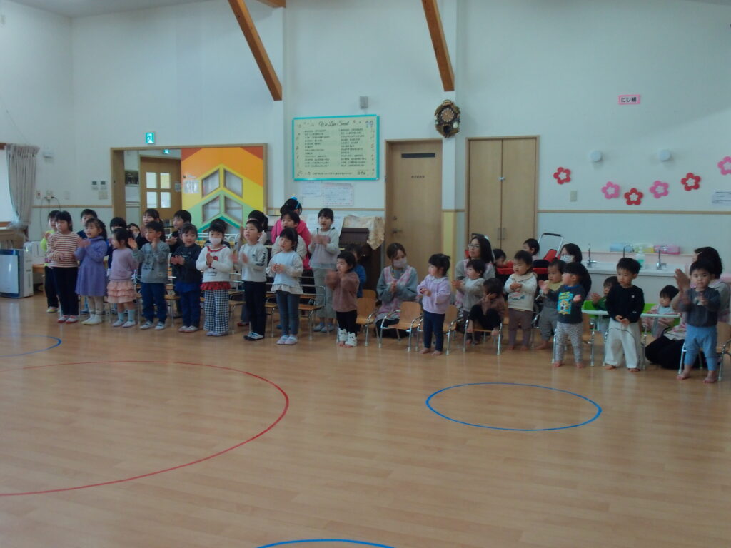 保護者の皆様、お忙しい中、誕生会にご参加いただき
