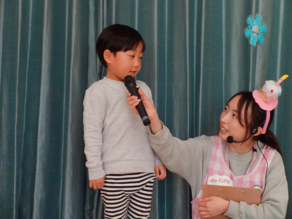 誕生児のインタビュー後は、あみ先生の出し物の時間⏰