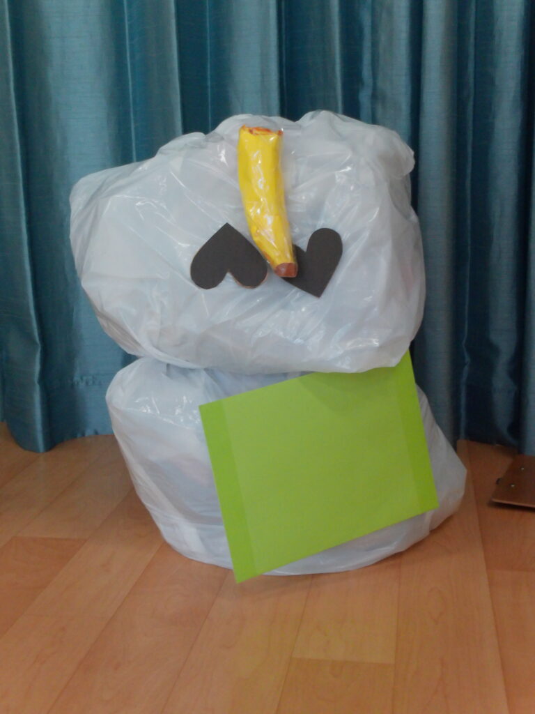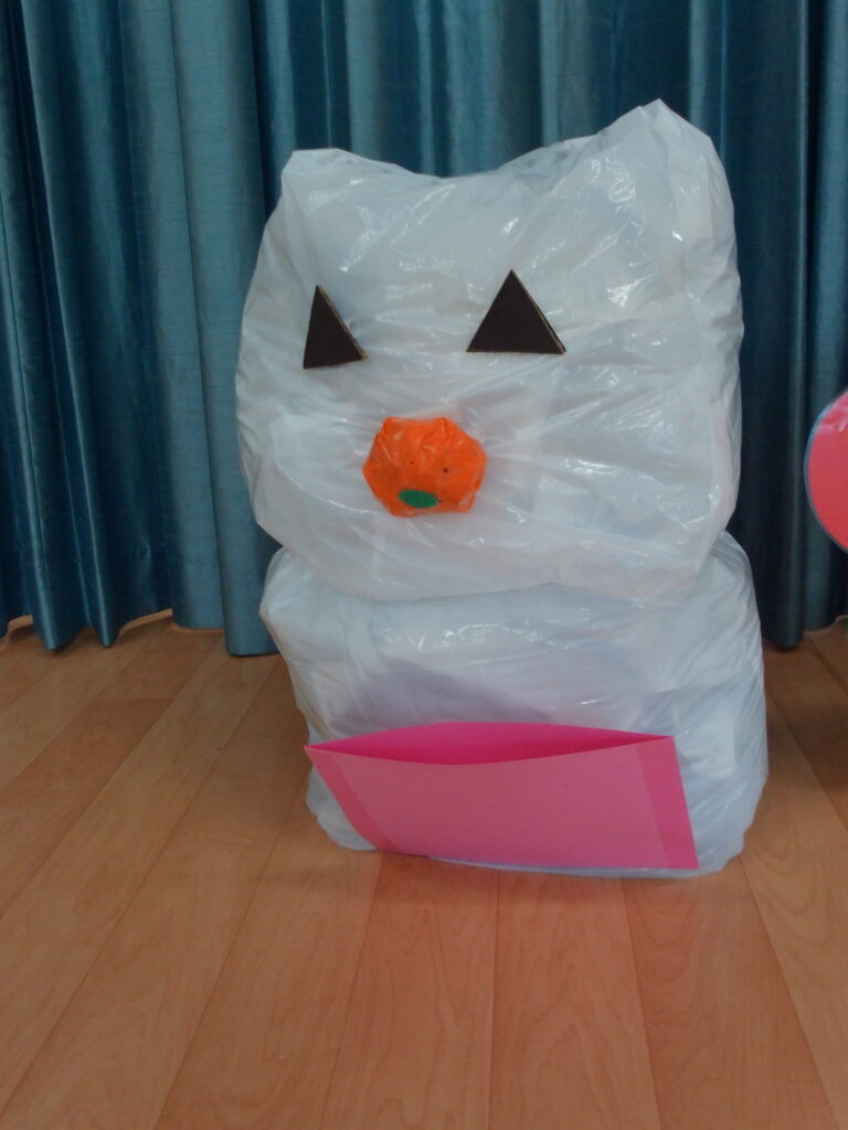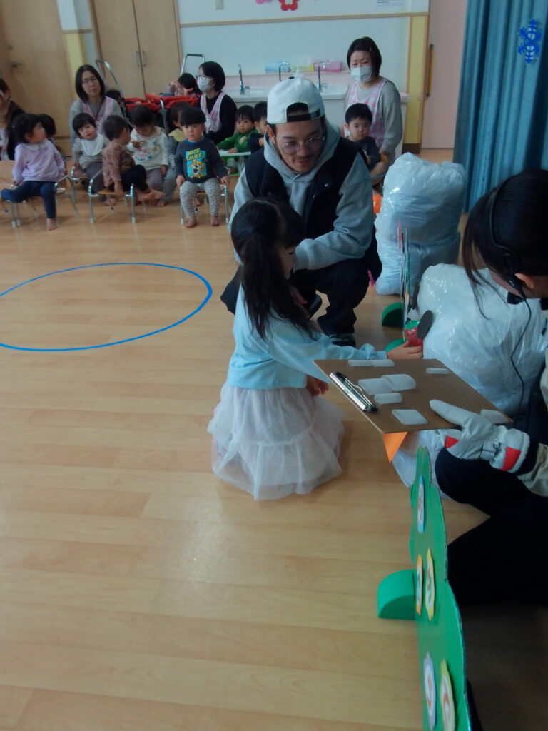 誕生児のお友だちが手伝ってくれたおかげで、あみ先生の雪だるまを完成させることができました😆