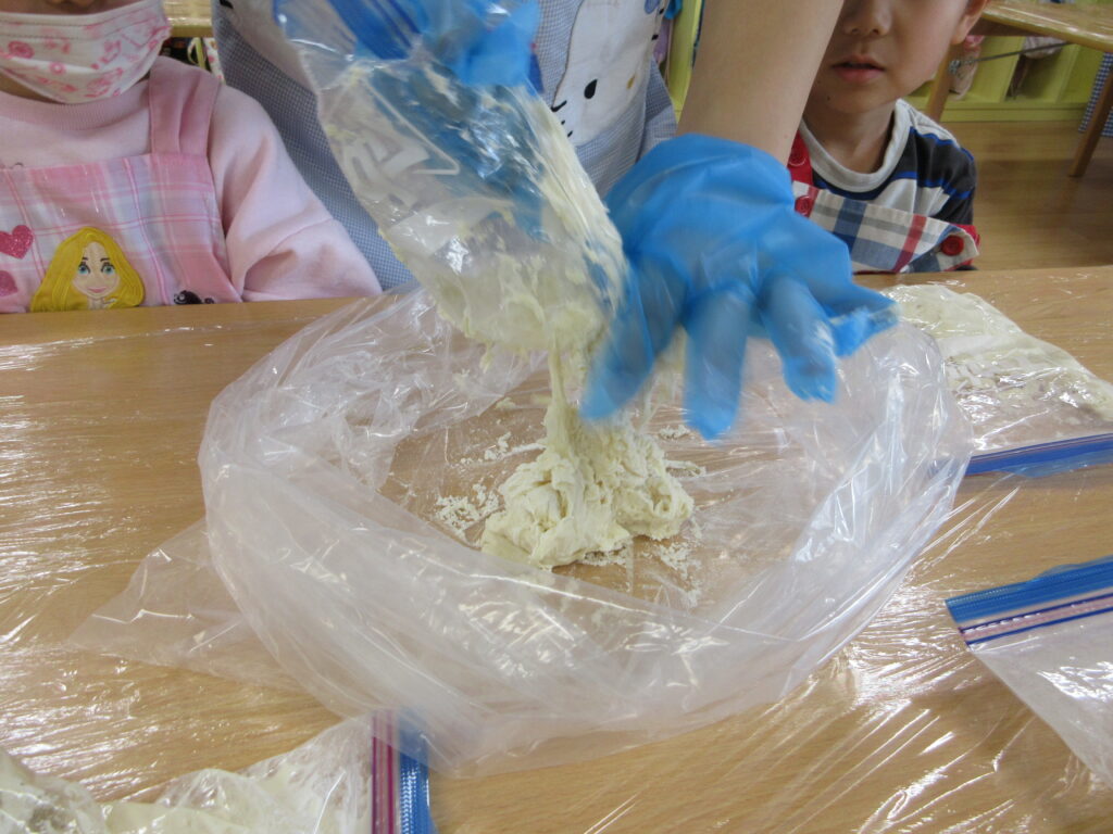 それぞれこねたものを一つの袋にまとめていきますよ~👆