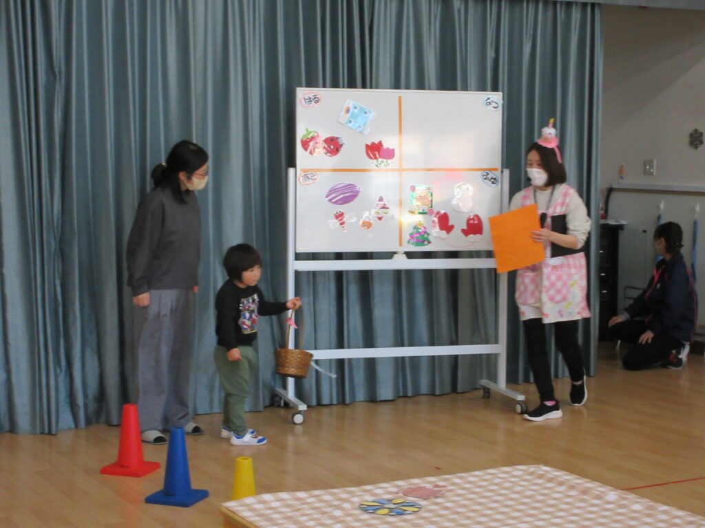 春にちなんだクイズをママが読み、答えの物を探しにいきます👆