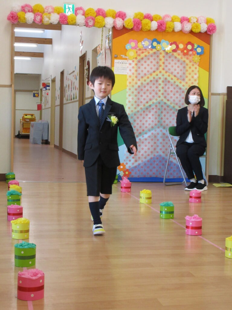 保護者の方々や、先生方のあたたかい拍手で卒園児が迎えられました👦👧
