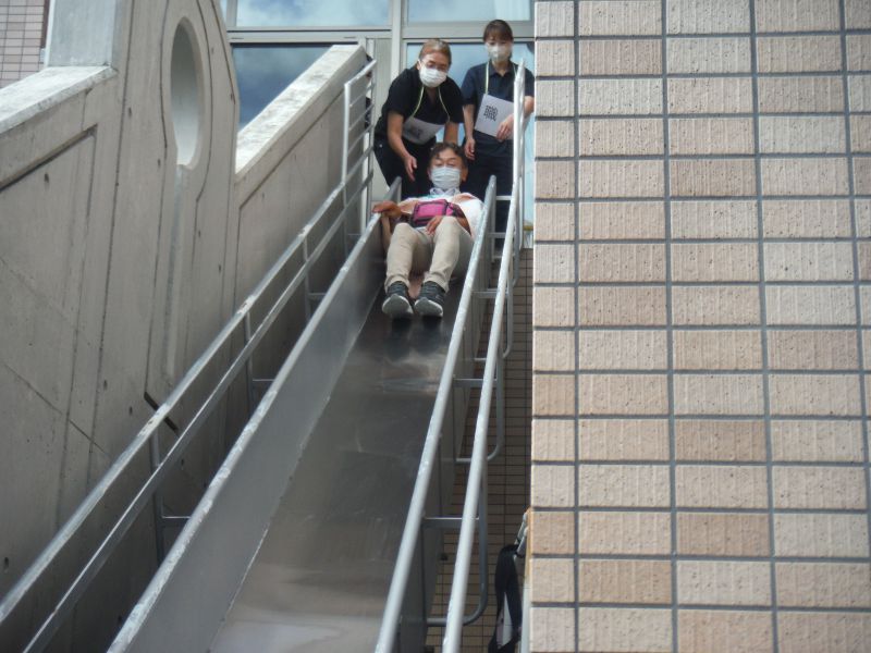 滑り台型の避難器具も実際に使用して、より現実に即した訓練となりました👩🦽🛝